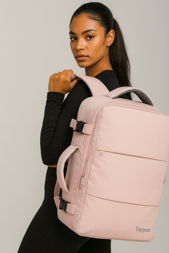 It’s shockingly lightweight for a structured travel backpack. The layout is designed by someone who clearly understands what women carry: laptop, tablet, power bank, cosmetics, snacks, water bottle, shoes, personal items—and everything gets a dedicated space.