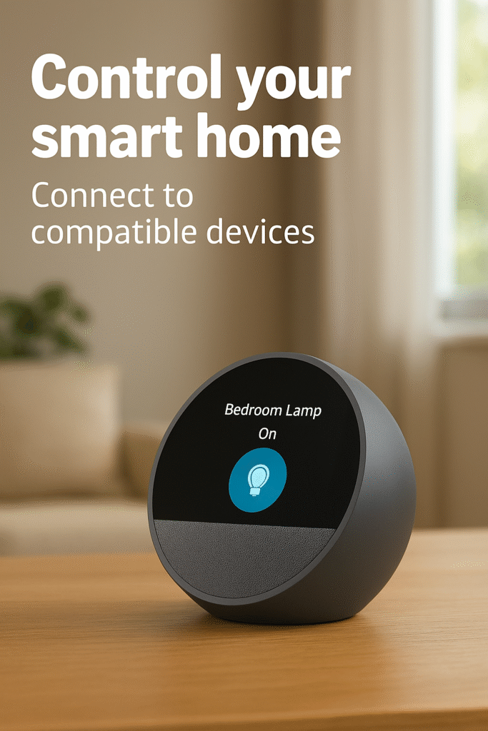 The Echo Spot is made for people who want a simple bedside Alexa with a small screen for time, weather, alarms, and music details. The screen can dim very low at night, so it doesn’t light up the whole room. The speaker is clear for voice and alarms, and the device also has no camera, which makes it more comfortable to use in bedrooms or private spaces. It also supports Alexa routines like gentle wake-up alarms, fading lights, or reading the morning weather automatically. Amazon also mentions that it is built using 36% recycled materials, which is rare in this price range.